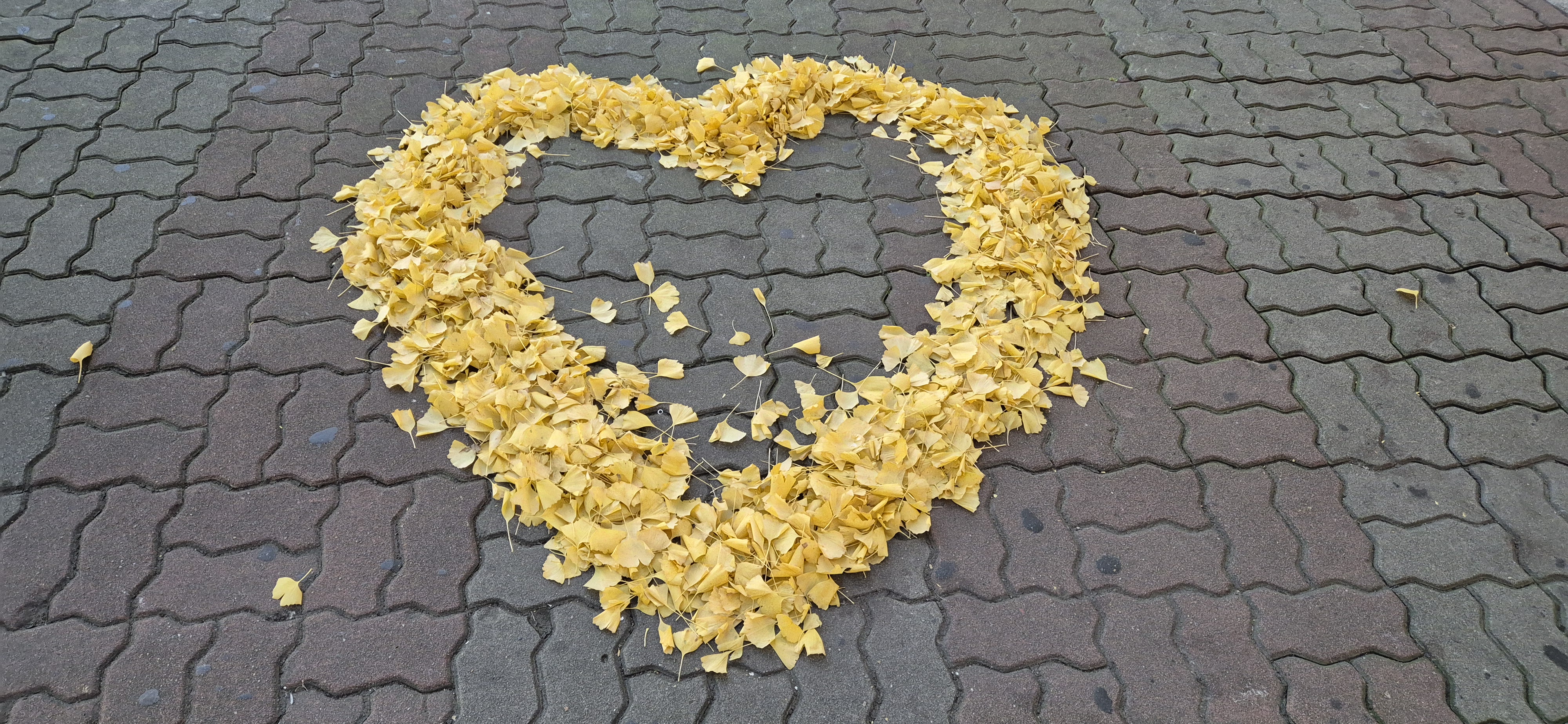 퇴근 길 누군가 만들어놓은 은행잎 하트는 송구함