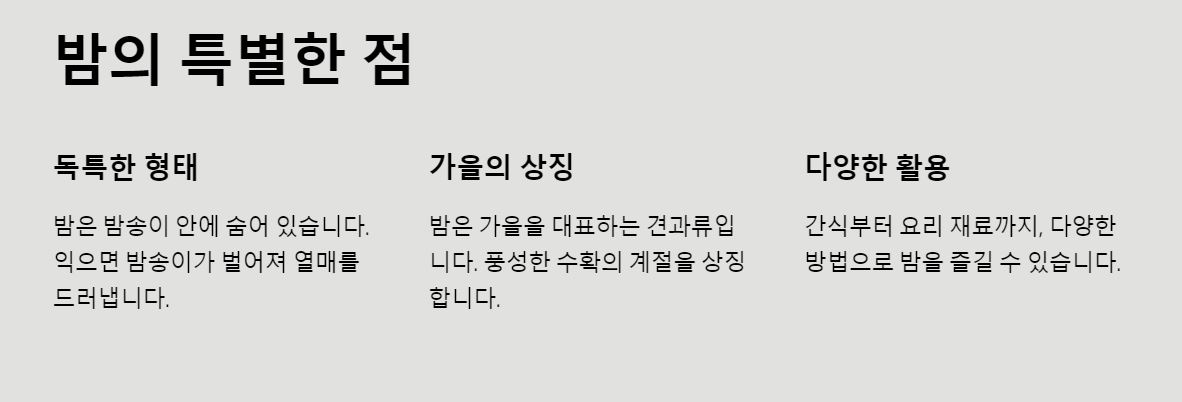 - 밤은 가을철 대표적인 견과류로, 식용으로 널리 사랑받는 열매