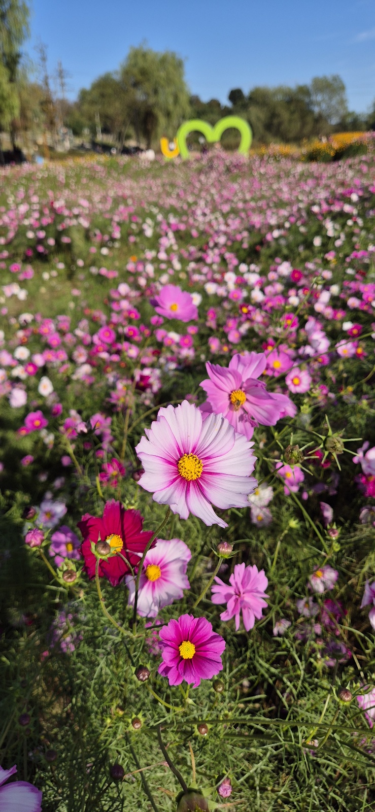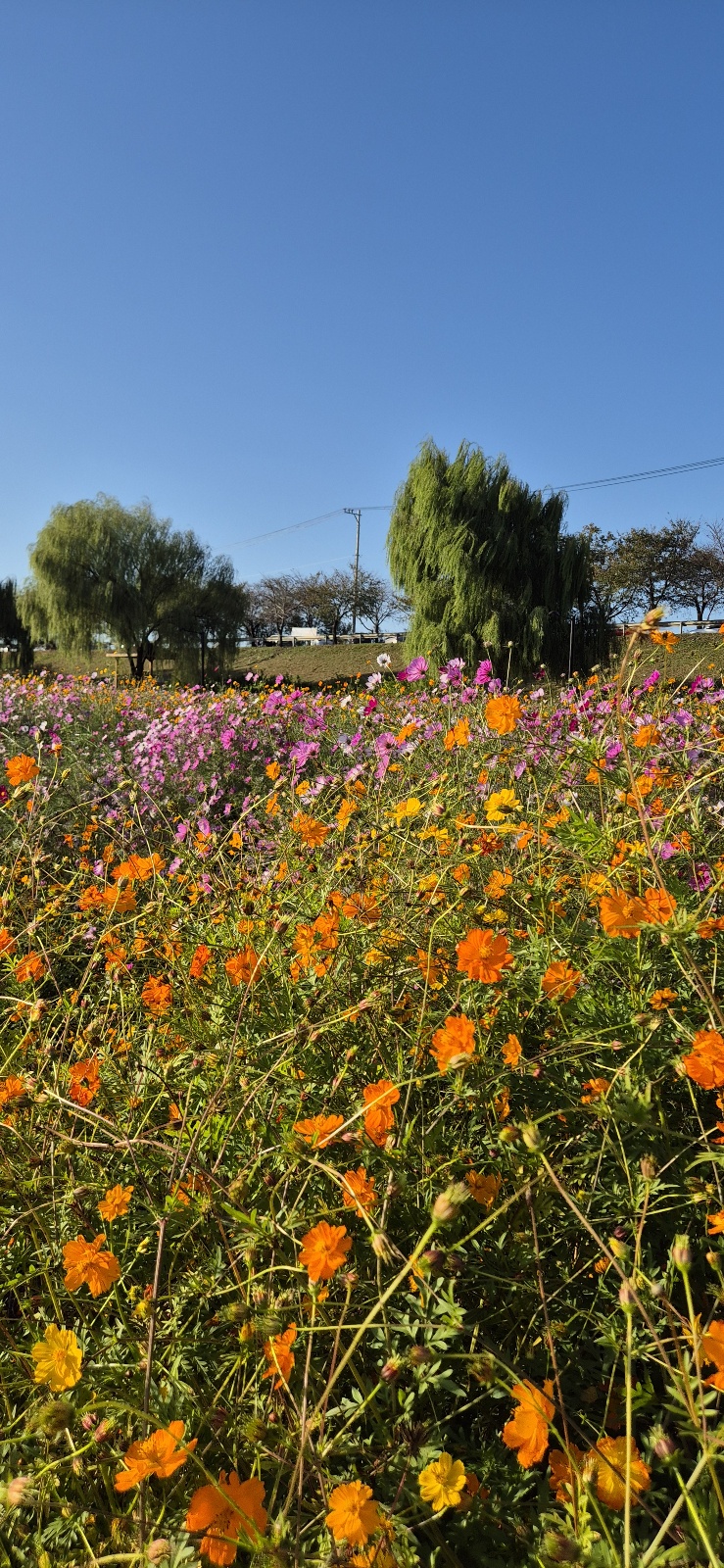 코스모스들이 배꼽을 잡고 웃는다