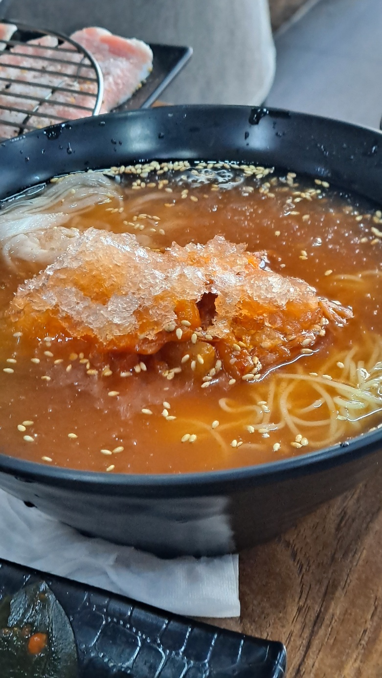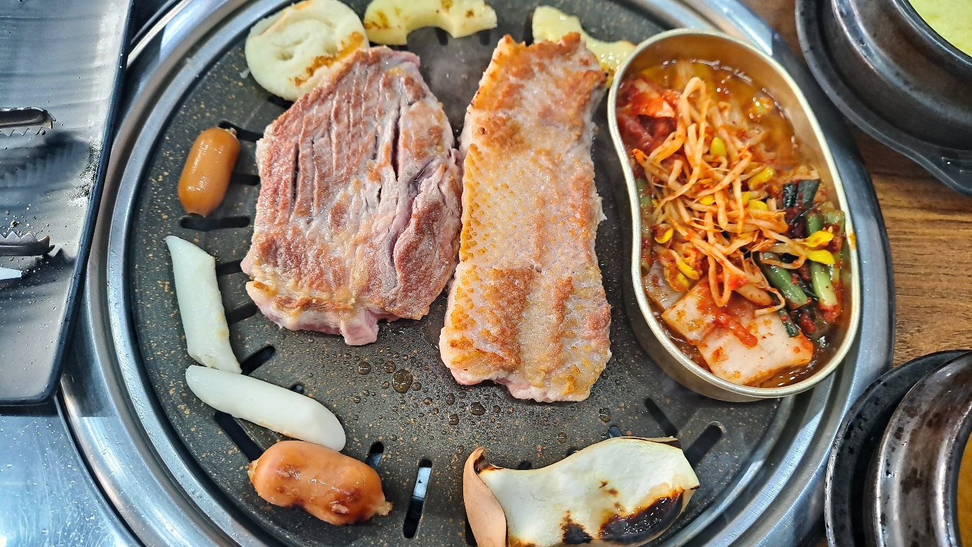 거기에 김치말이국수 한 그릇, 또 목살 1인분 추가,