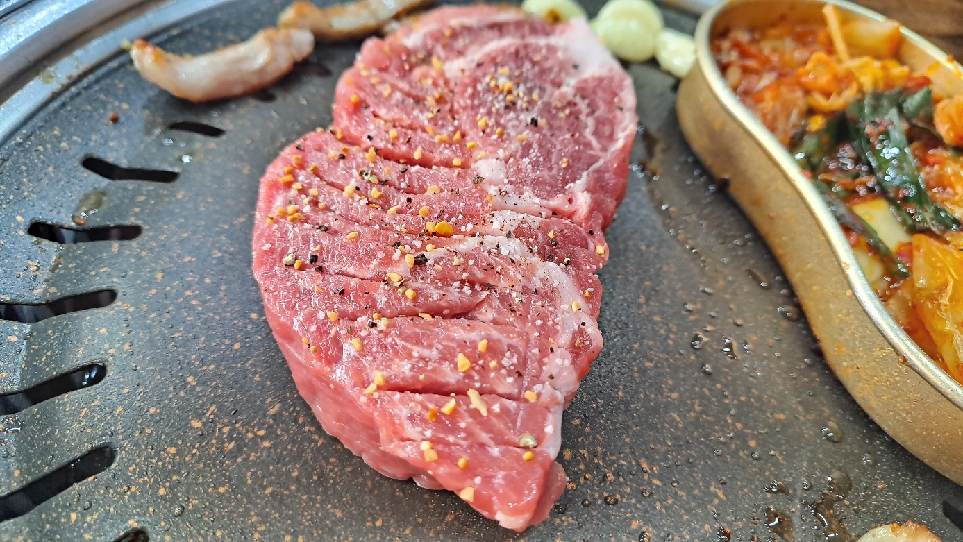 목살 두께 좀 보세요, 스테이크 굽는 느낌,