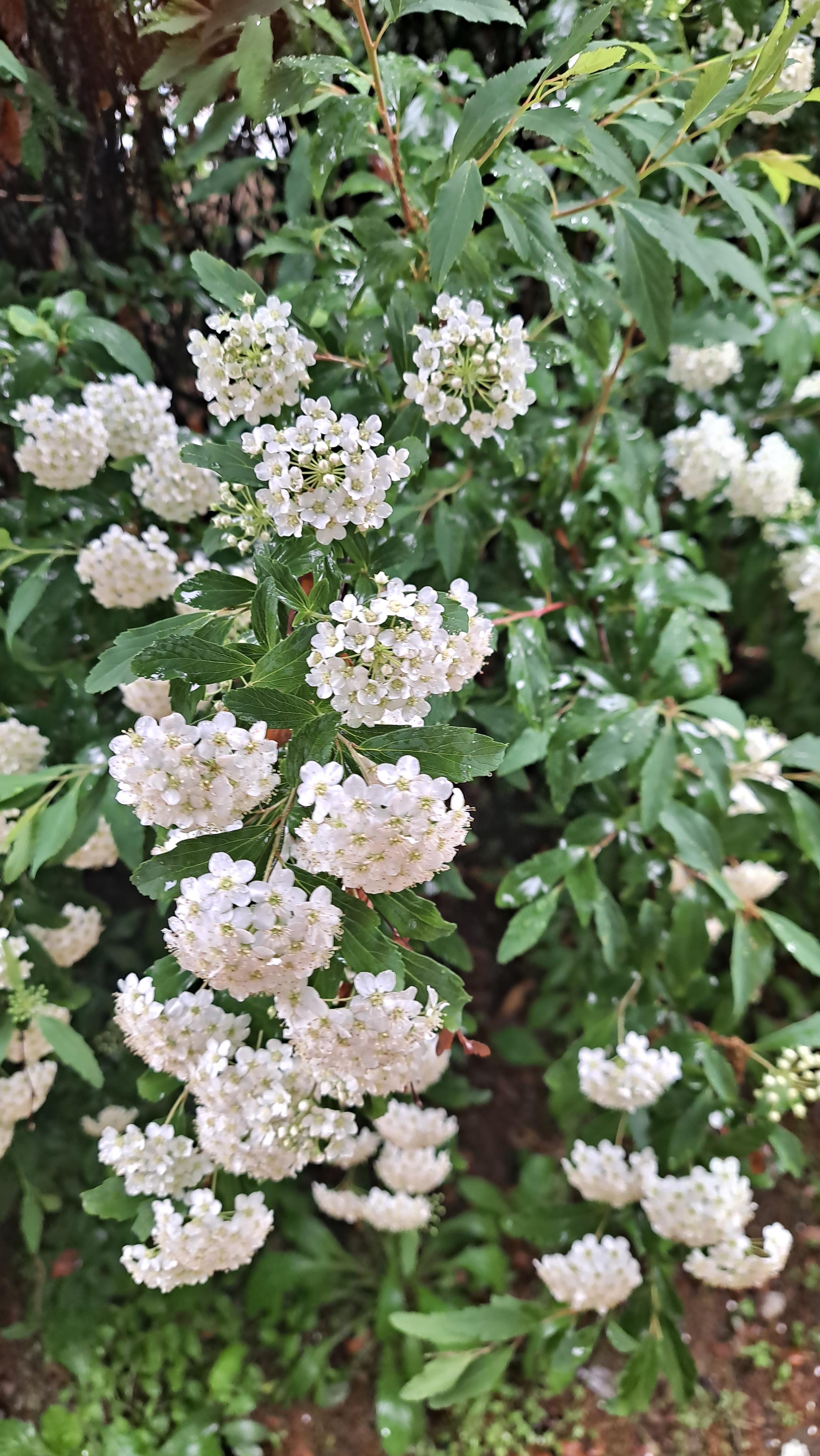 4월에 지름 7∼10mm의 흰 꽃이 줄기 끝에 달린다. 우산 모양의 산형꽃차례로 피는데 마치 작은 공을 쪼개어 늘어놓은 듯한 모양이다. 꽃잎은 둥글고 꽃받침잎은 삼각형이며 끝이 뾰족하다. 수술은 25개이고 꽃밥은 희다. 열매는 골돌과로 털이 없으며 9∼10월에 익는다.