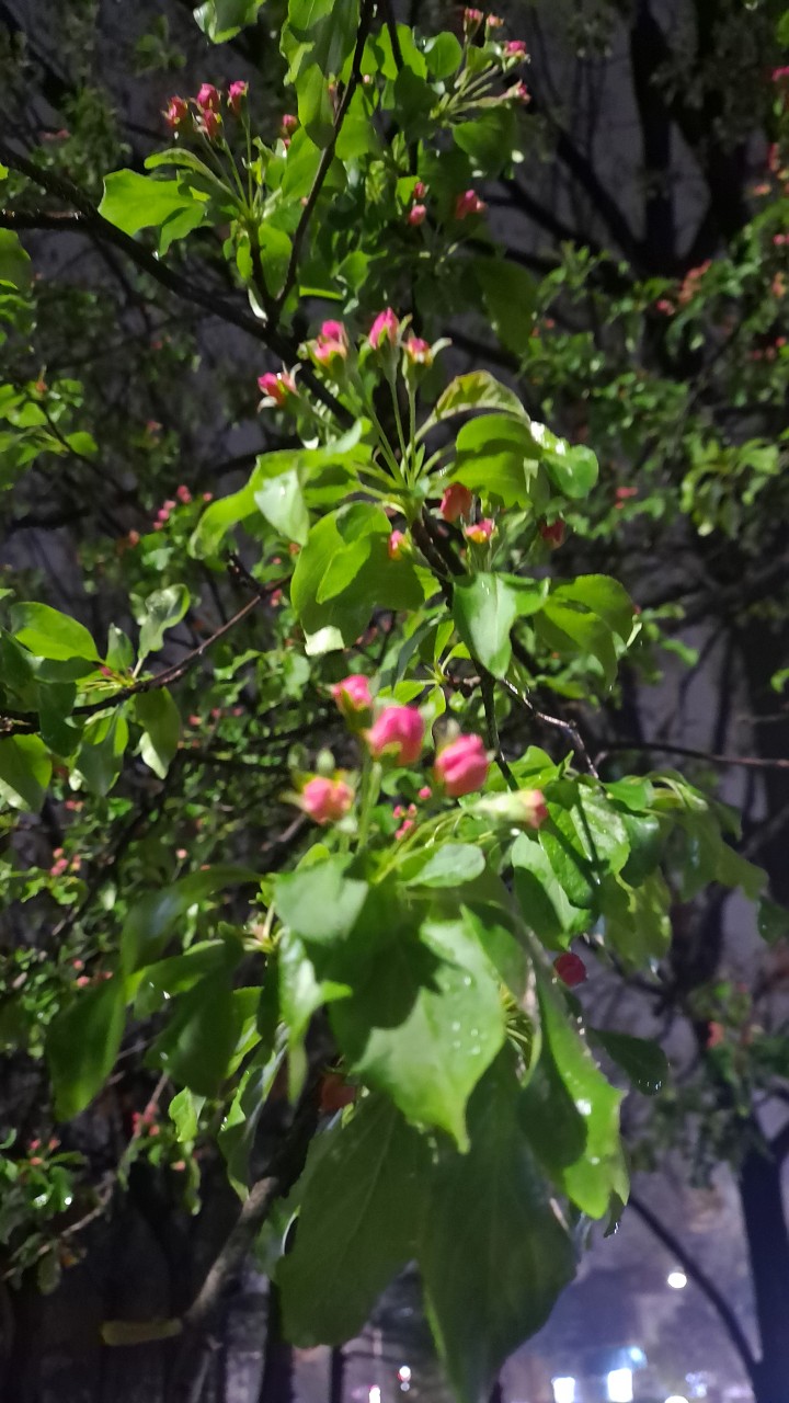 꽃사과나무 꽃봉우 리는 핑크 였는데