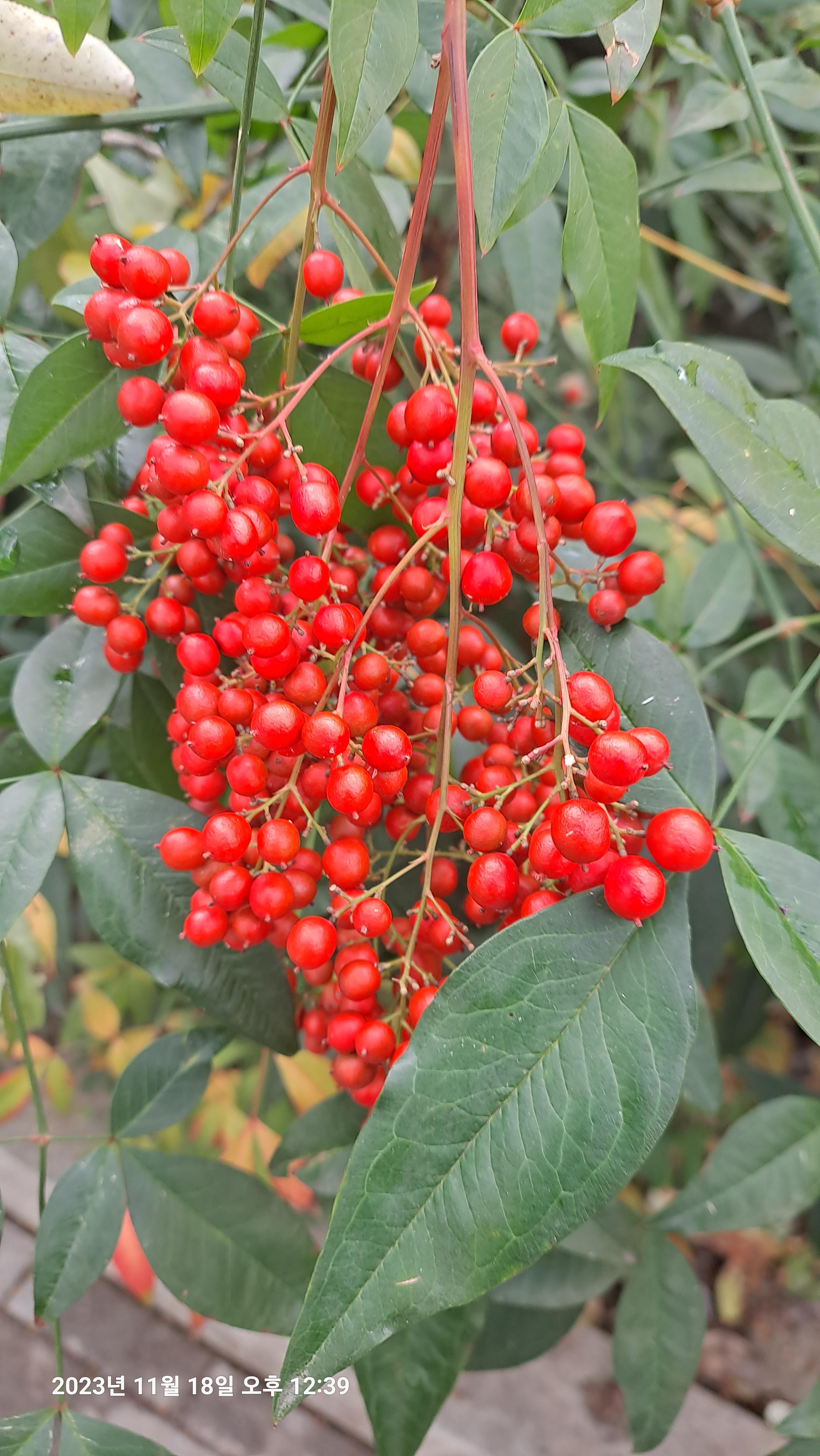 남천 나무의 꽃말은 전화위복, 정원수나 관상수로 인기가 많습니다.