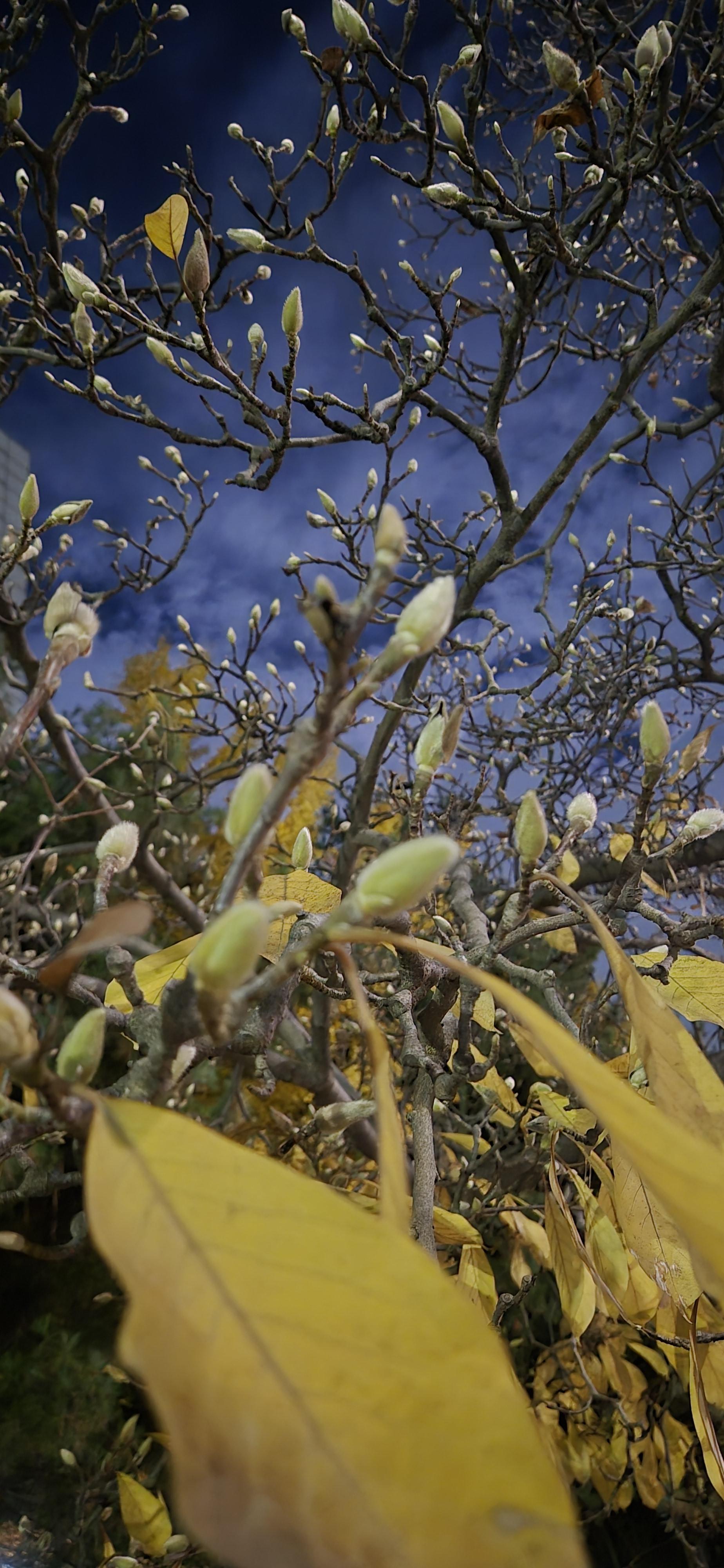 공원목련은 따듯한 봄 날씨로 착각