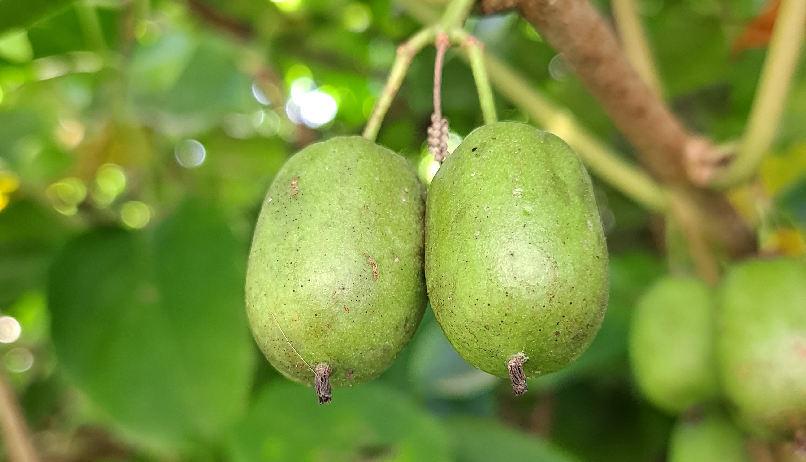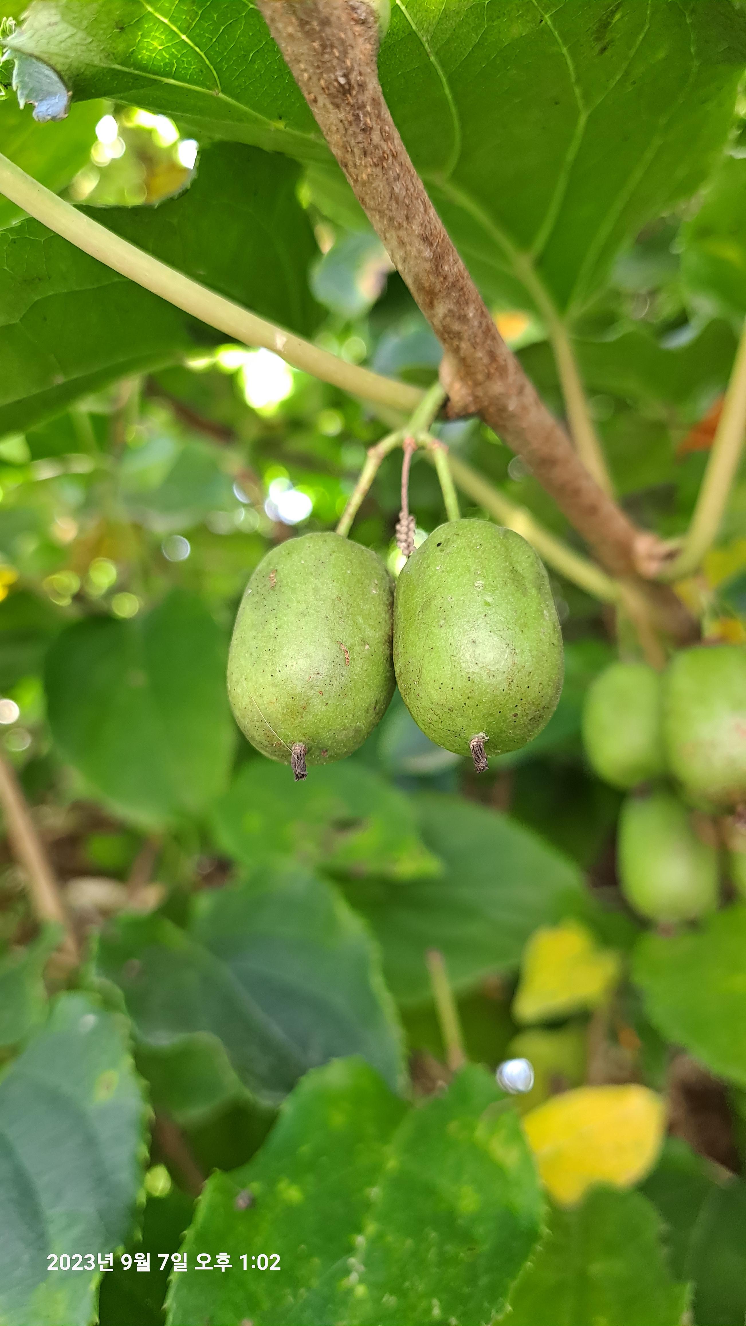 열매는 8-10월에 성숙하며 달걀 모양으로 생겼으며 키위와 달리 털이 없고, 진한 초록색이다.