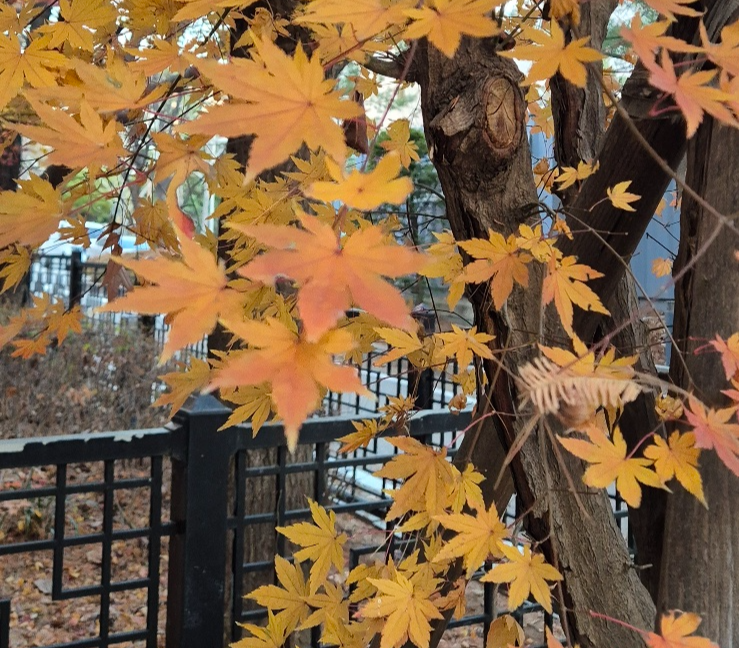 가을이 되면 낙엽이 지기 전에 잎사귀가 노랗고 붉게 물들어 단풍이 든다고 한다.