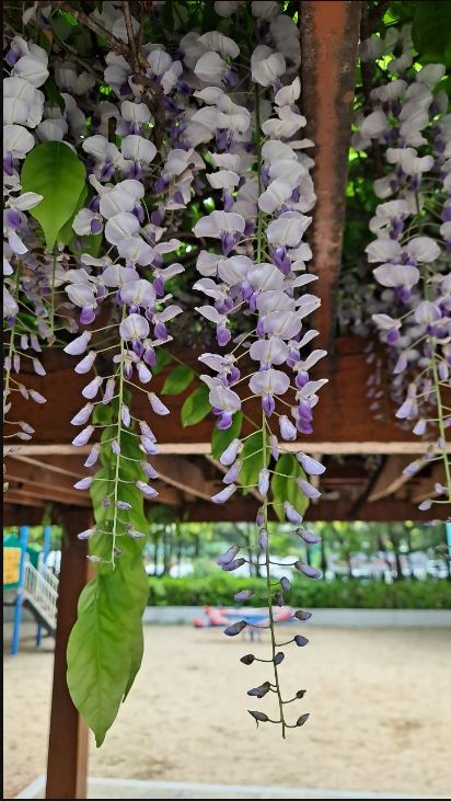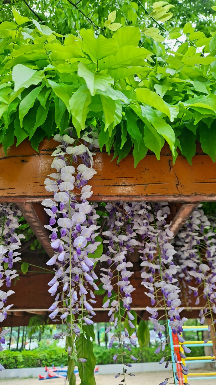 등나무꽃은 향기가 좋아 공원 벤치 등에 많이 식재합니다