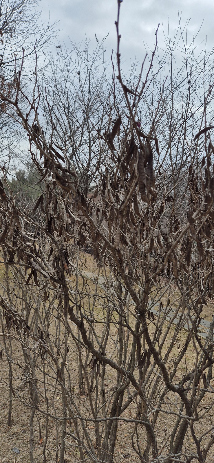 열매는 10월경에 콩처럼 열리며, 8 ~ 9월에 익고, 겨울철까지 남아있다.