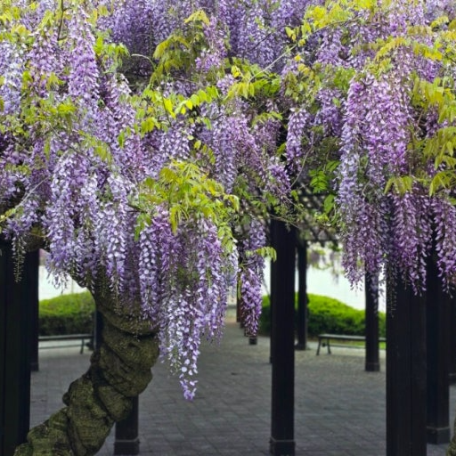 오래된 등나무는 줄기가 굵고 나무껍질처럼 보이기도 해서, 가까이서 보면 정말 인상적이에요.