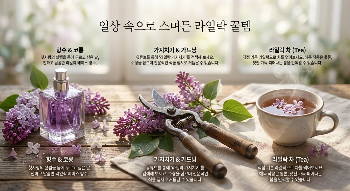 라일락의 달콤하고 강렬한 향기를 일상에서 다채롭게 즐기는 방법은 다음과 같습니다