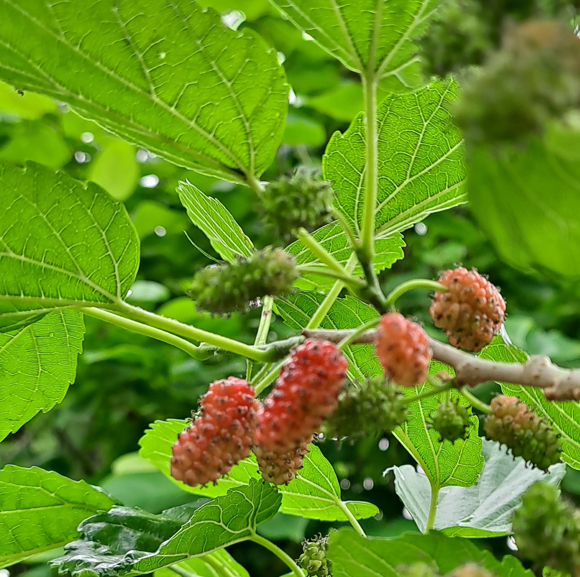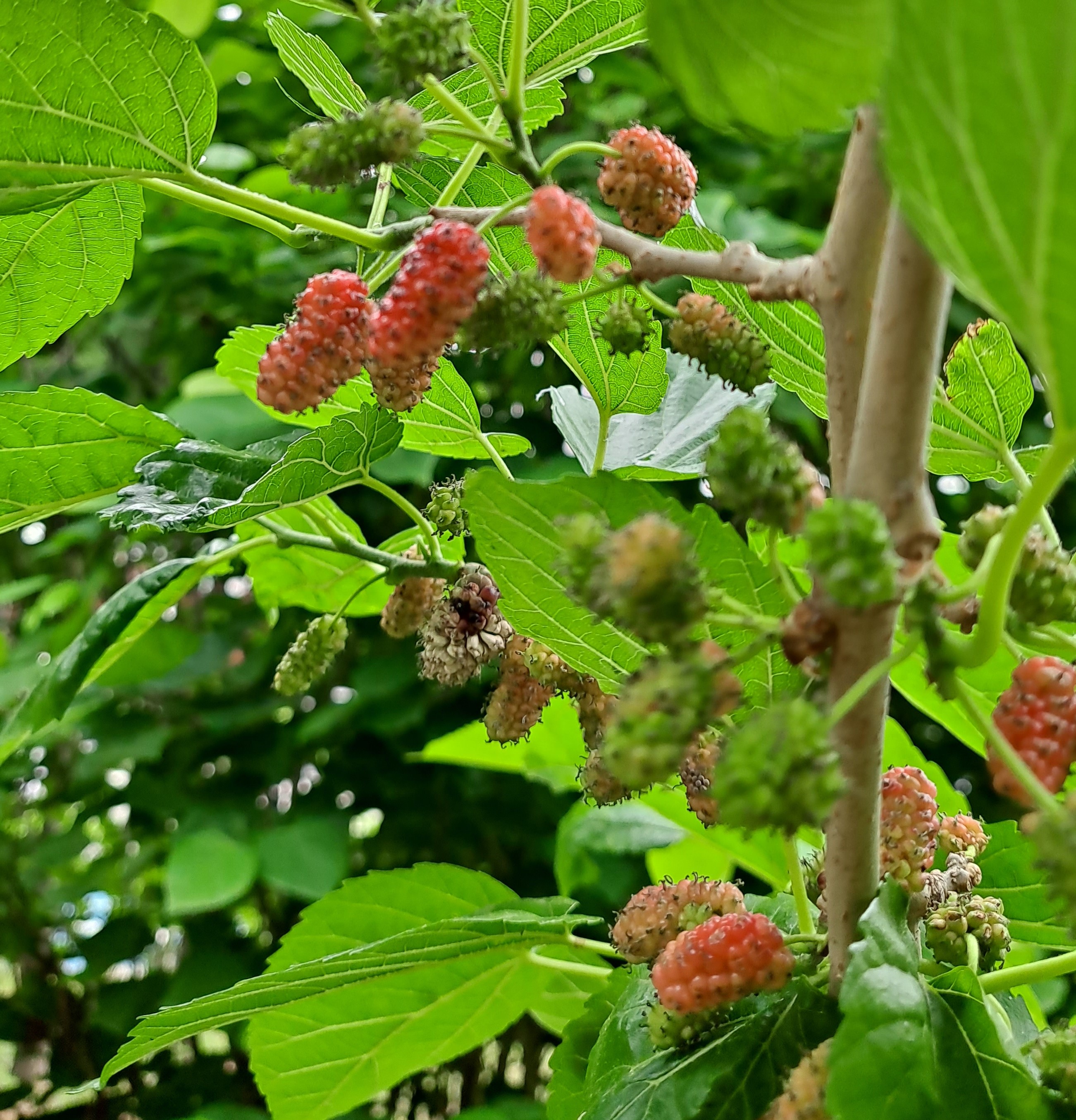 The red ones are unripe, and the black ones are fully ripe mulberries (Odolgae).