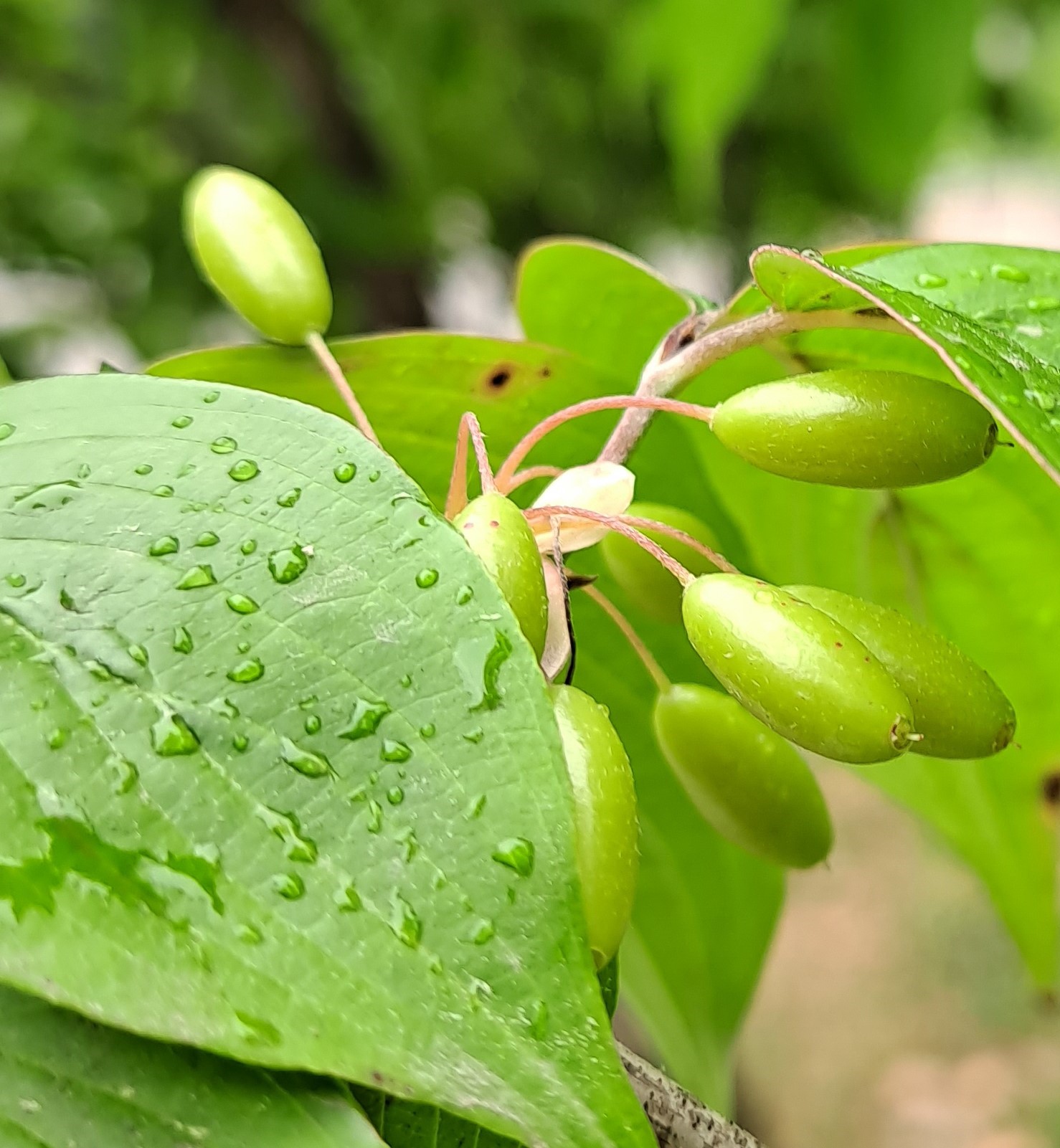 산수유 열매는 예로부터 약재로 널리 쓰이는데, 서리가 내린 후 열매를 수확하여 씨앗을 빼고 말린 것을 약재로 사용한다고 합니다.