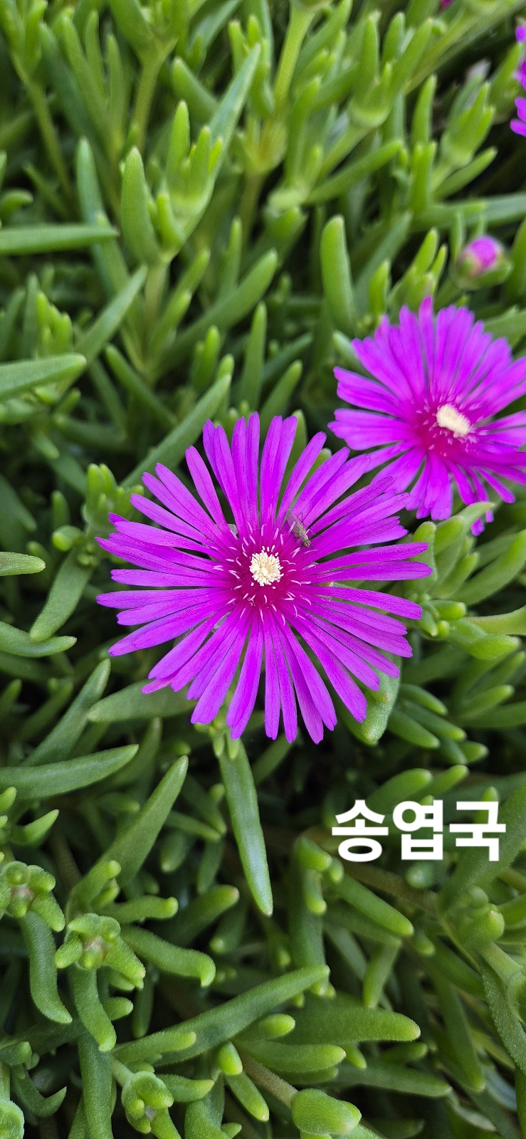 송엽국은 모양이 조화처럼 반듯하고 꽃색이 휘황찬란해서 눈길이 절로갑니다.