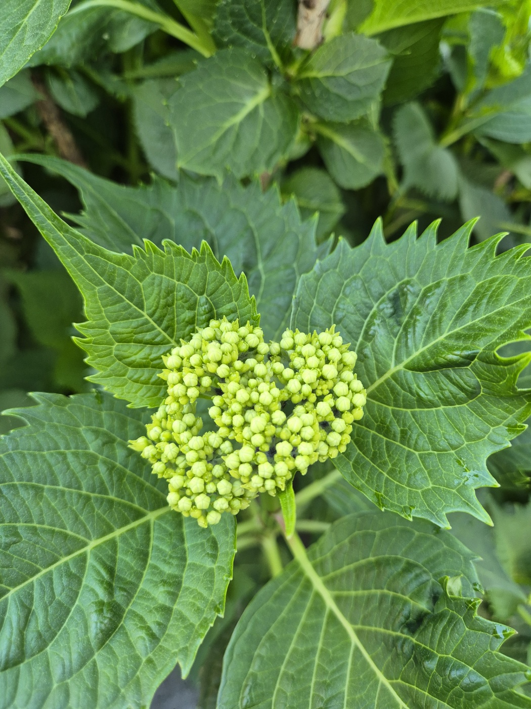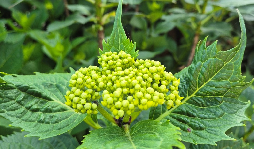 Hydrangea [Bigleaf hydrangea] Hydrangea flowers grow in corymbs and are shaped like round balls.
