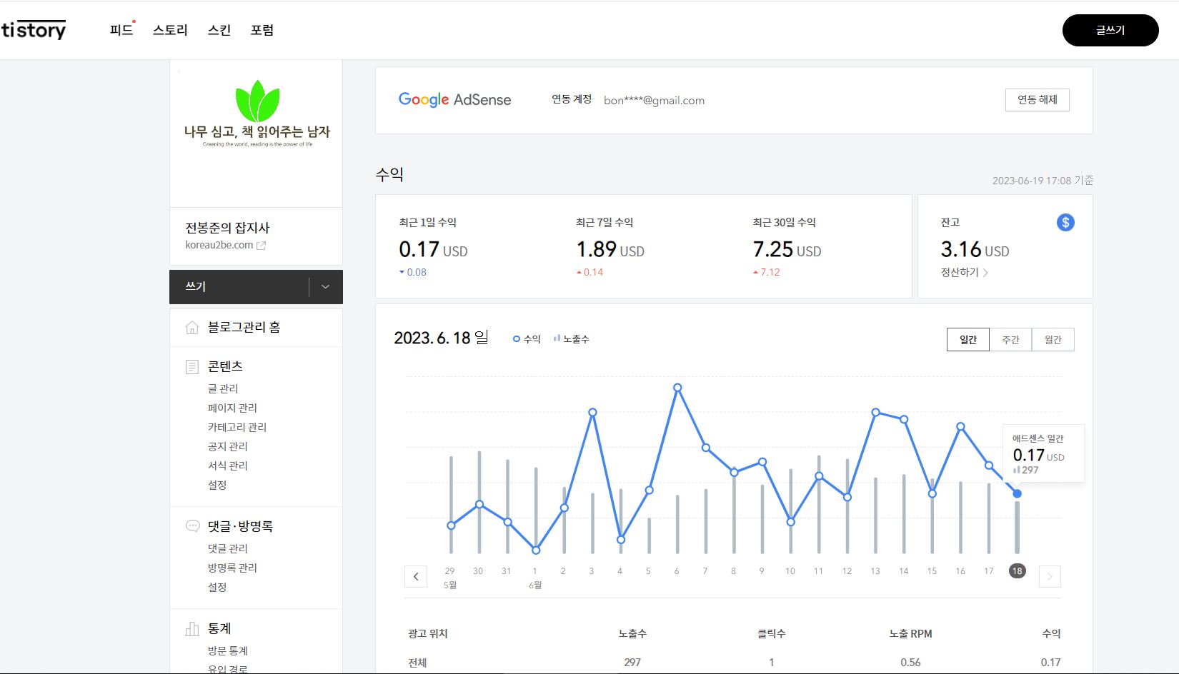 티스토리 블로그로 월 몇 백만원씩 수익 발생한다는 분들에 비하면 아주 미미미미