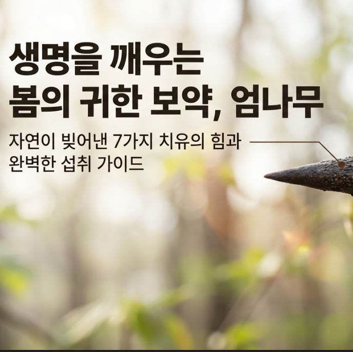 엄나무는 단순한 식물을 넘어, 험한 가시 속에 인간을 이롭게 하는 치유의 정수를 감추어 둔 자연의 선물입니다. 조상들이 발견한 이 귀한 보배를 현대적인 감각으로 다시 마주하는 것은, 우리 몸을 가장 자연스럽고 지혜롭게 돌보는 길입니다. 계절의 변화 앞에서 몸의 소리에 귀를 기울이고, 자연이 건네는 따뜻한 기운으로 스스로를 보듬어 보시길 바랍니다.