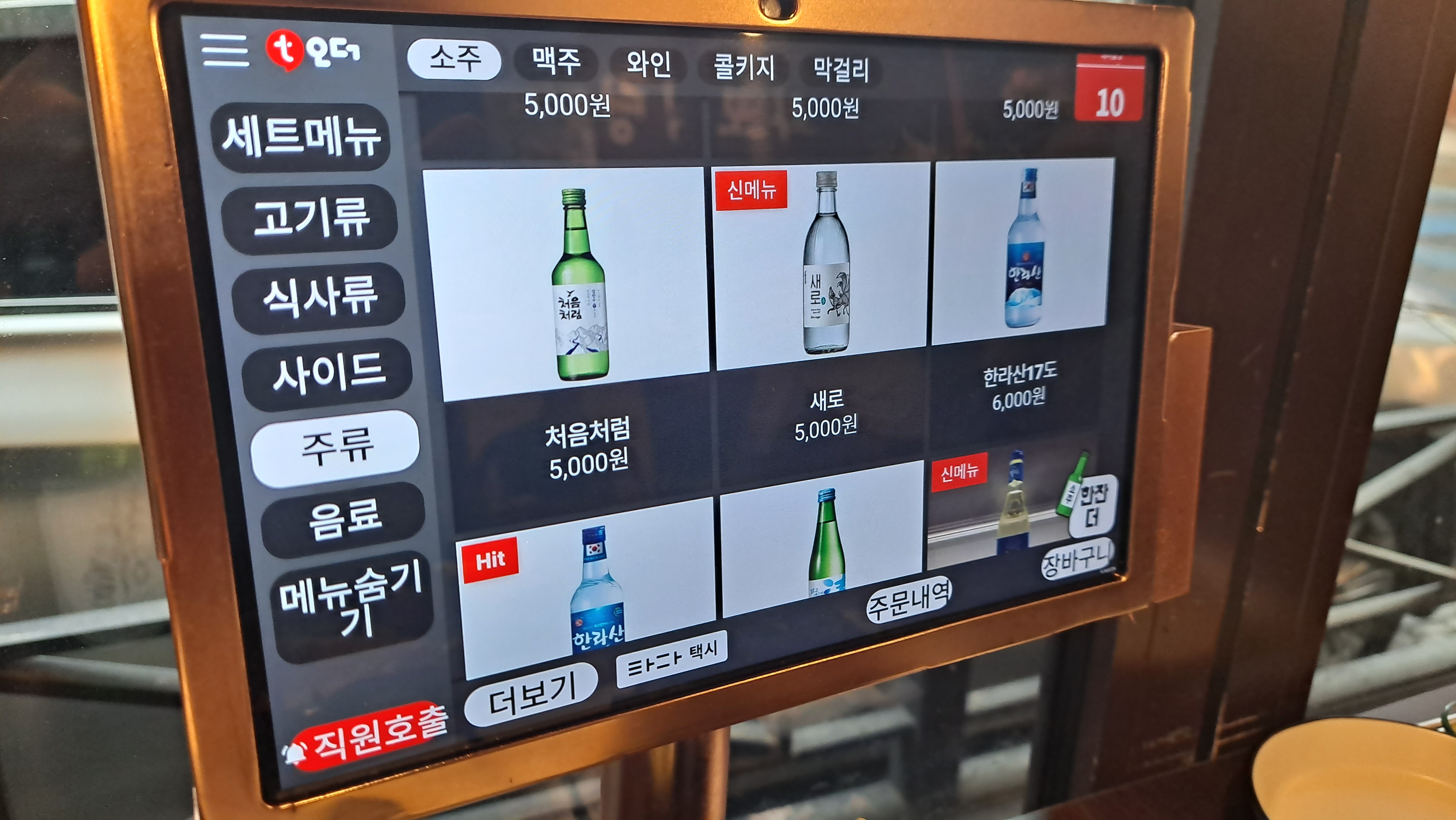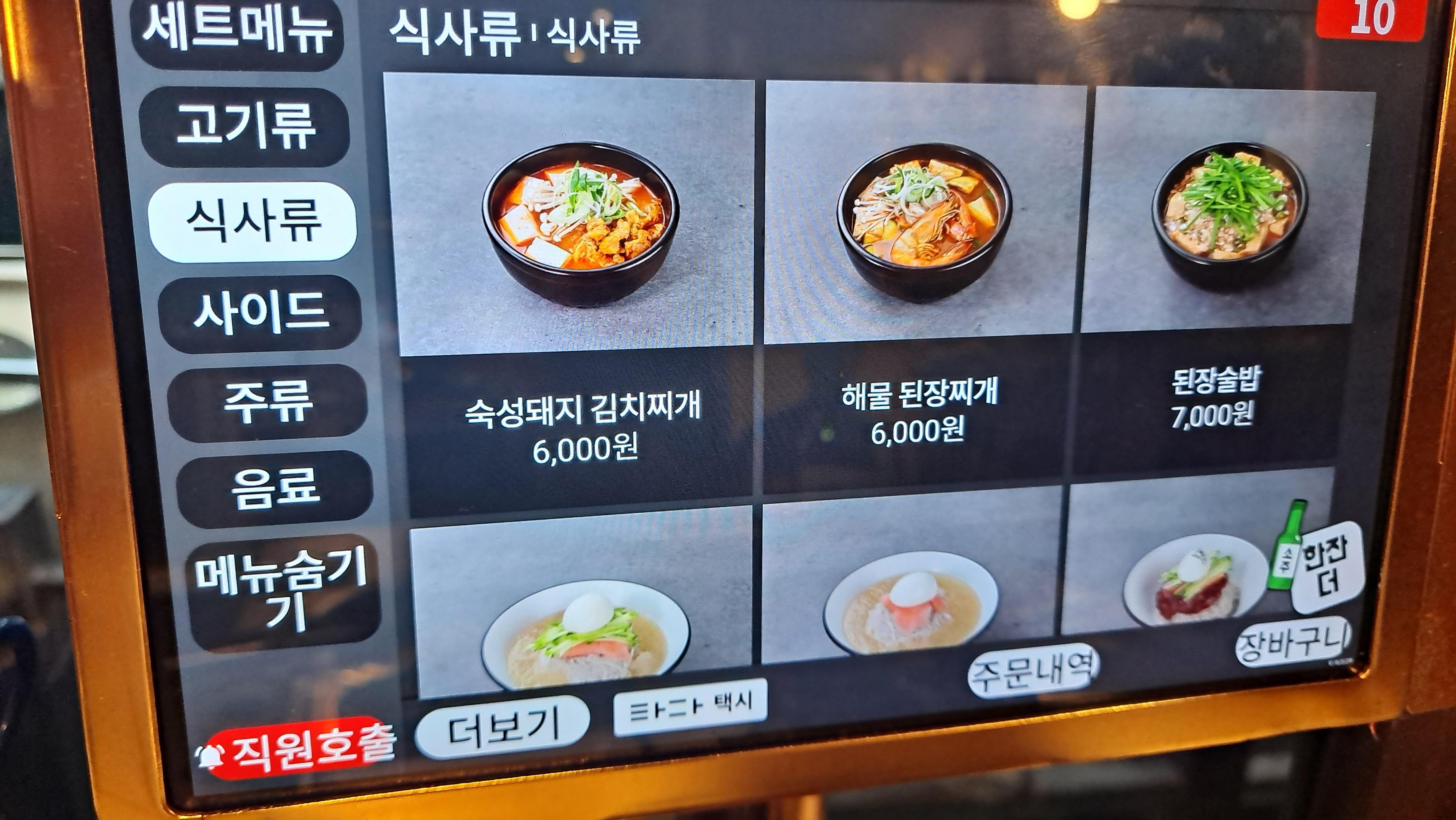 주문은 테블릿으로 주문.... 우리같은 중년들은 글씨가 작아 잘 안보입니다