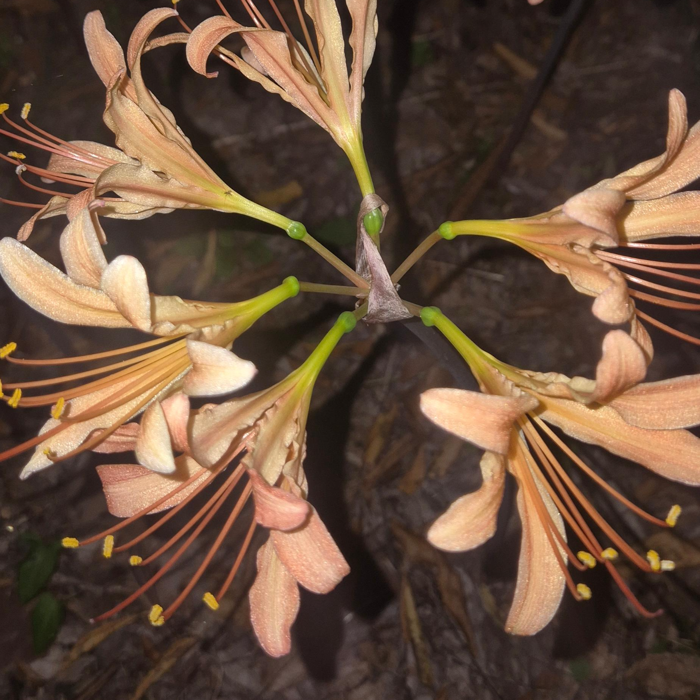 - 꽃: 잎이 진 후 여름이 끝날 무렵, 잎이 없는 상태에서 홀로 솟아난 꽃줄기 끝에 꽃이 피어납니다. 꽃은 연한 붉은빛 또는 분홍빛을 띠며, 4~8송이씩 둥근 모양으로 무리 지어 핍니다. 나팔꽃처럼 생긴 꽃잎은 여섯 갈래로 갈라지고 끝이 살짝 뒤로 말려 있으며, 길게 뻗은 수술이 밖으로 삐져나온 것이 특징입니다. 상사화 꽃은 향기가 거의 없습니다.