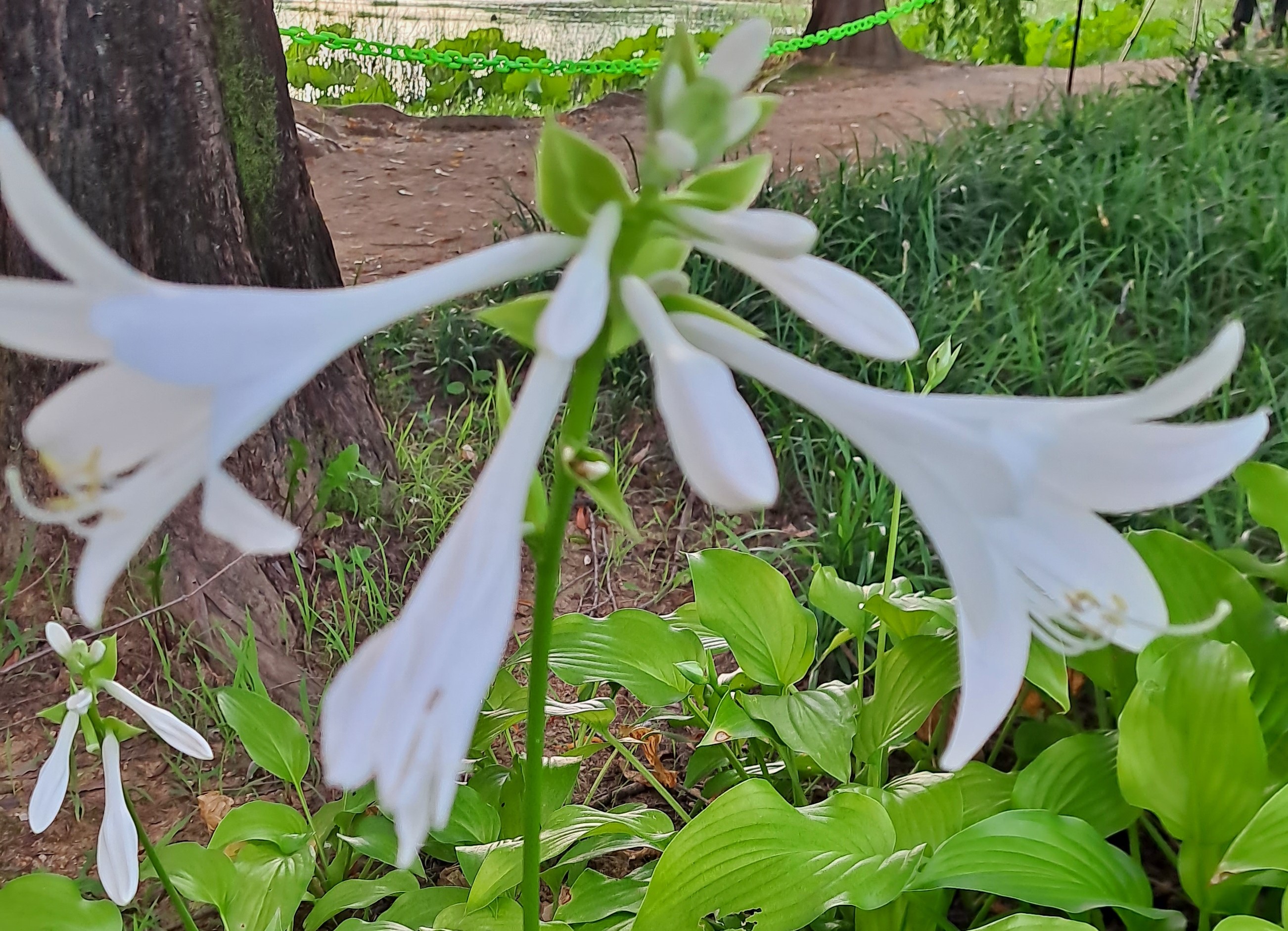 | 옥잠화 : 백합과 다년생 초본식물, 꽃은 흰색으로 8~9월에 피며 총상으로 달린다. 잎은 자루가 길고 달걀모양의 원형, 6개의 꽃잎 밑부분은 서로 붙어 통모양 |