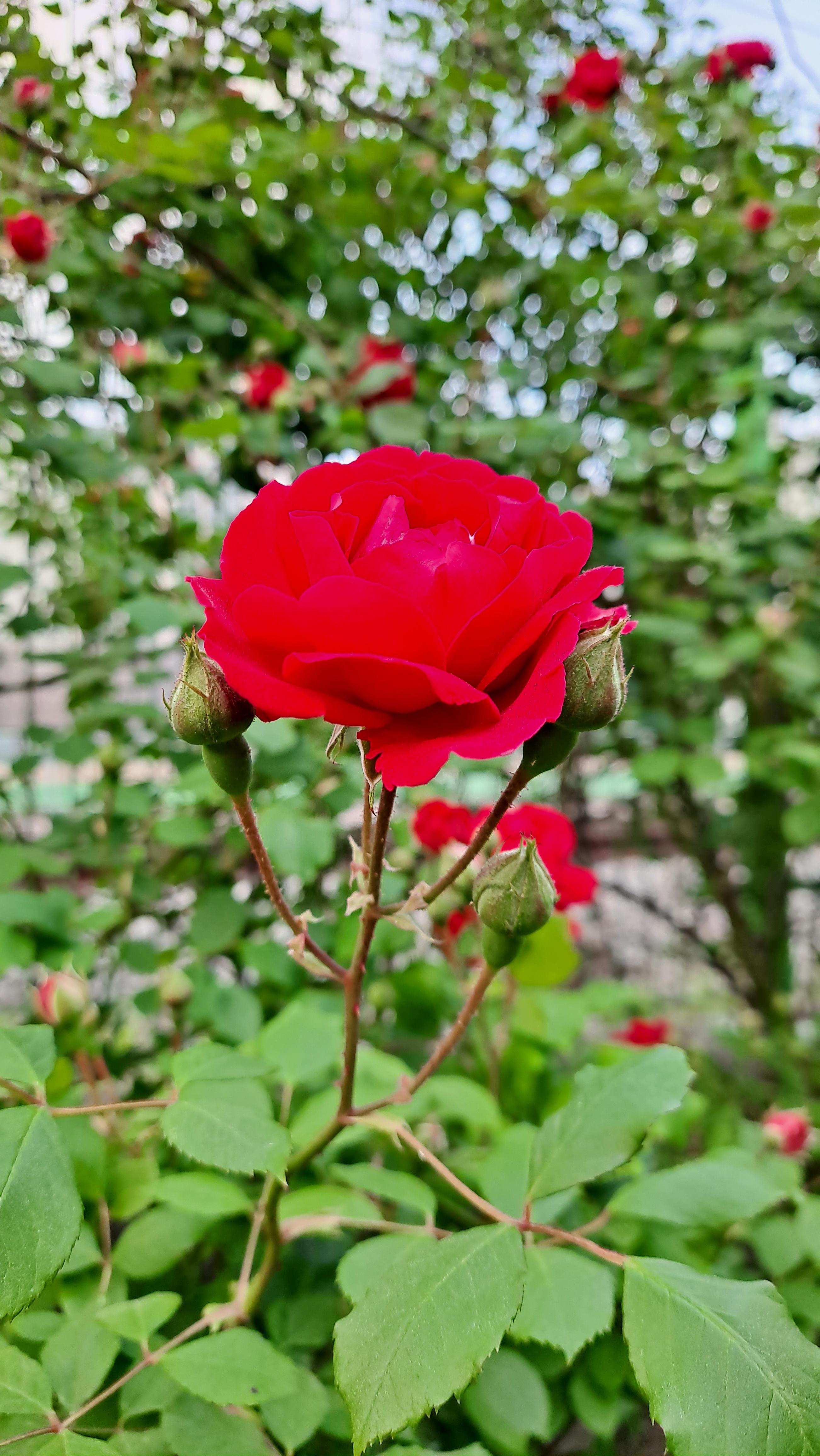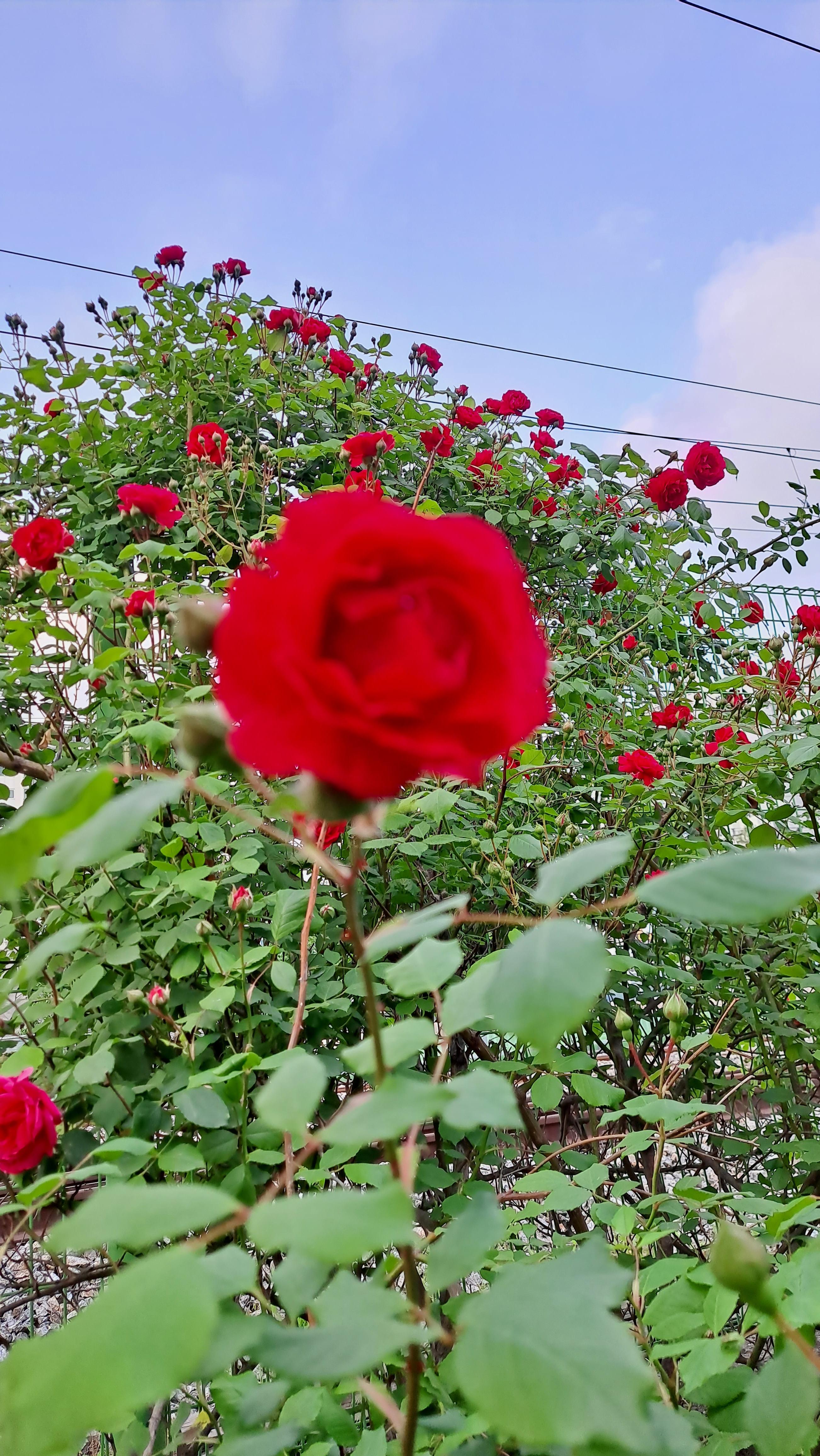 거리엔, 도로곳곳 울타리엔 붉은 장미가 유혹중