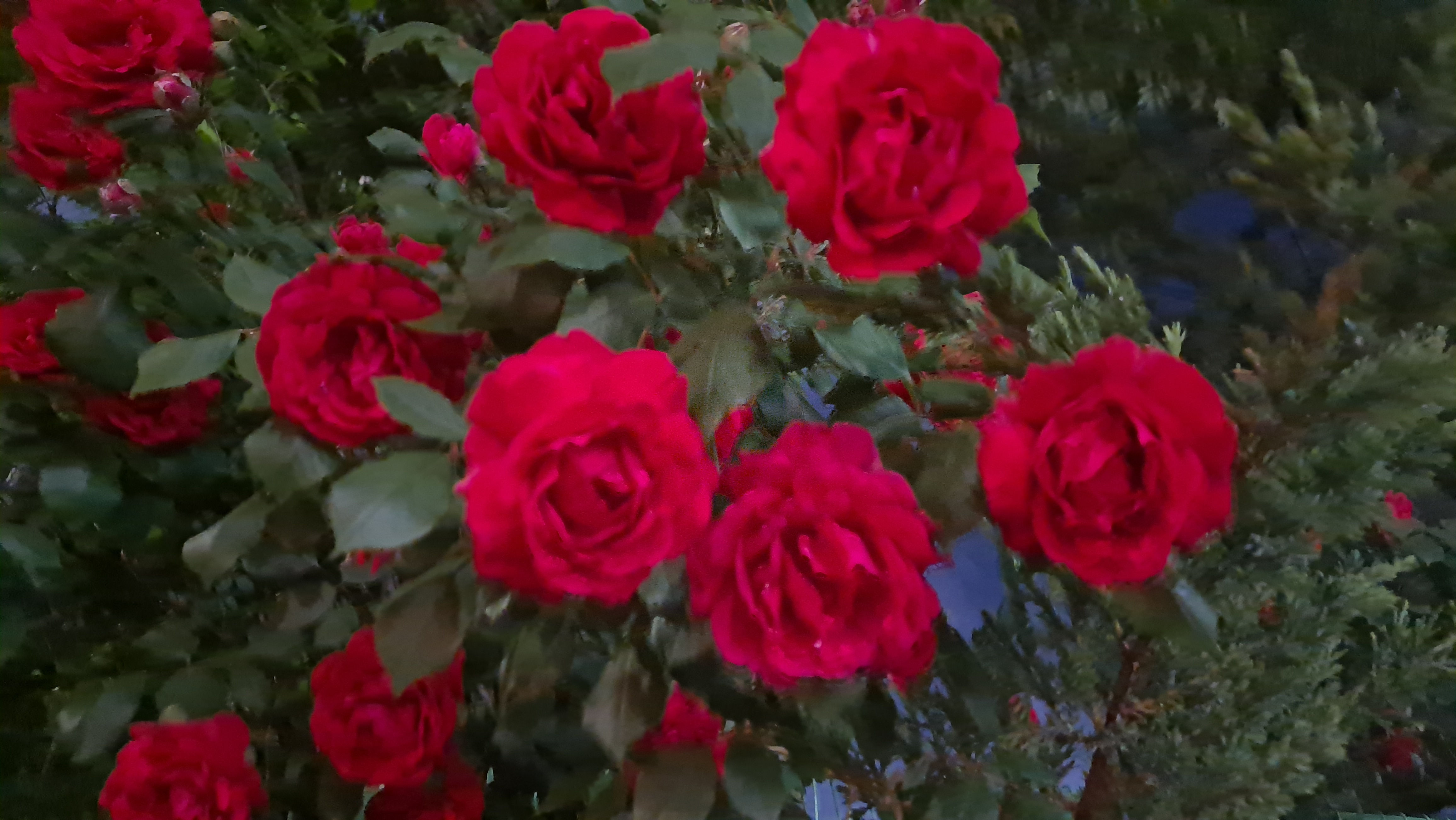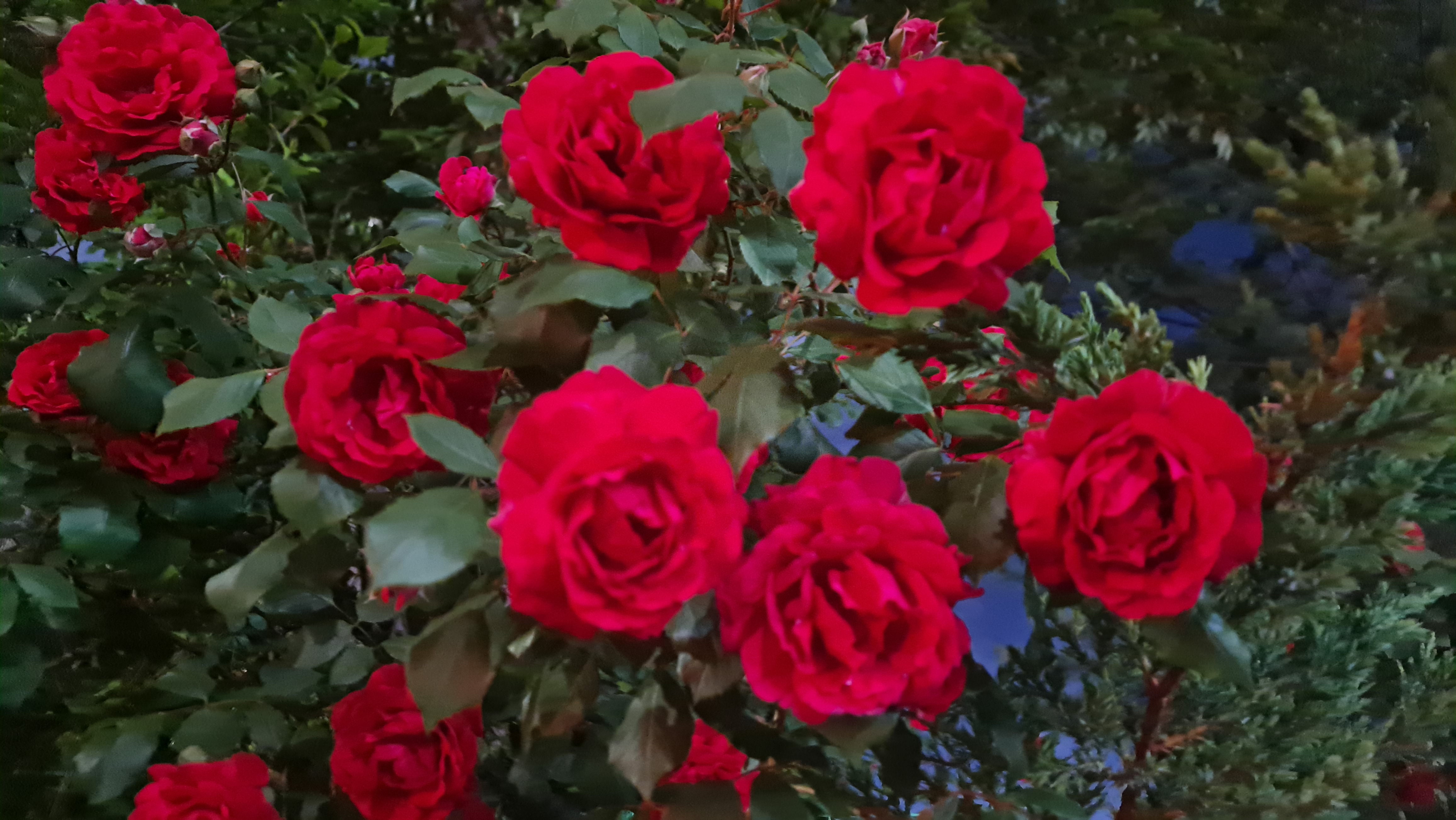 거리엔, 도로곳곳 울타리엔 붉은 장미가 유혹중