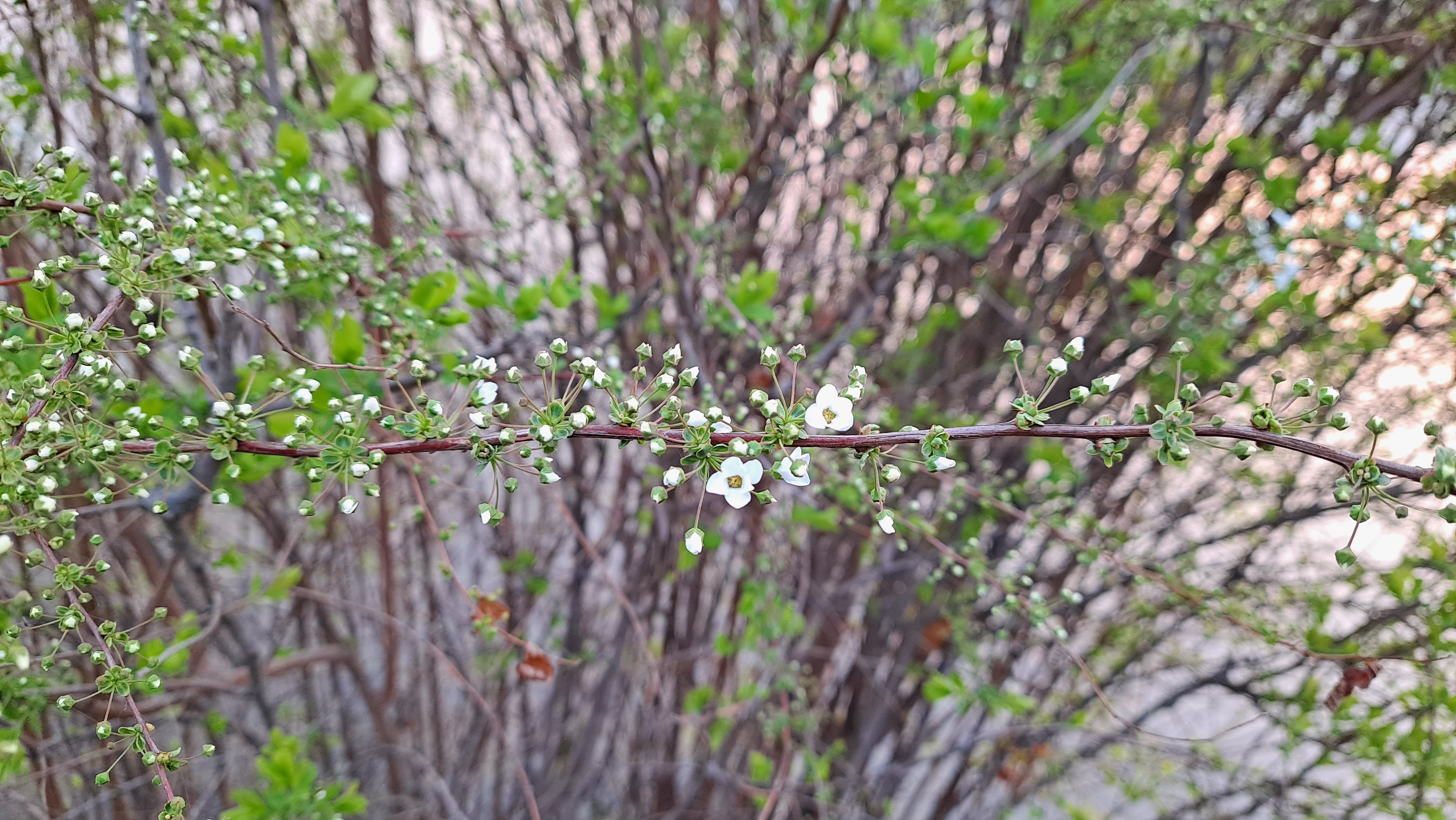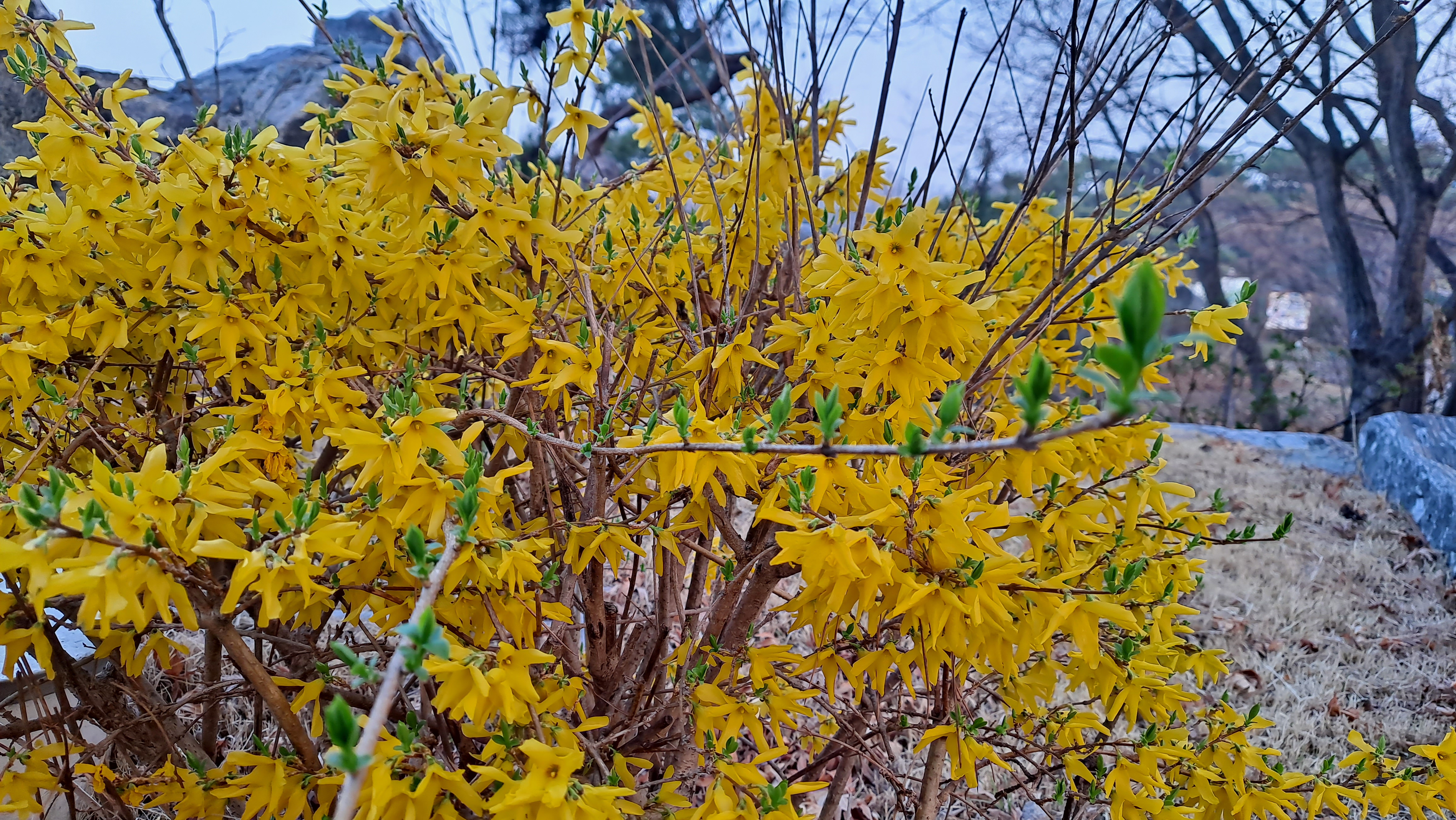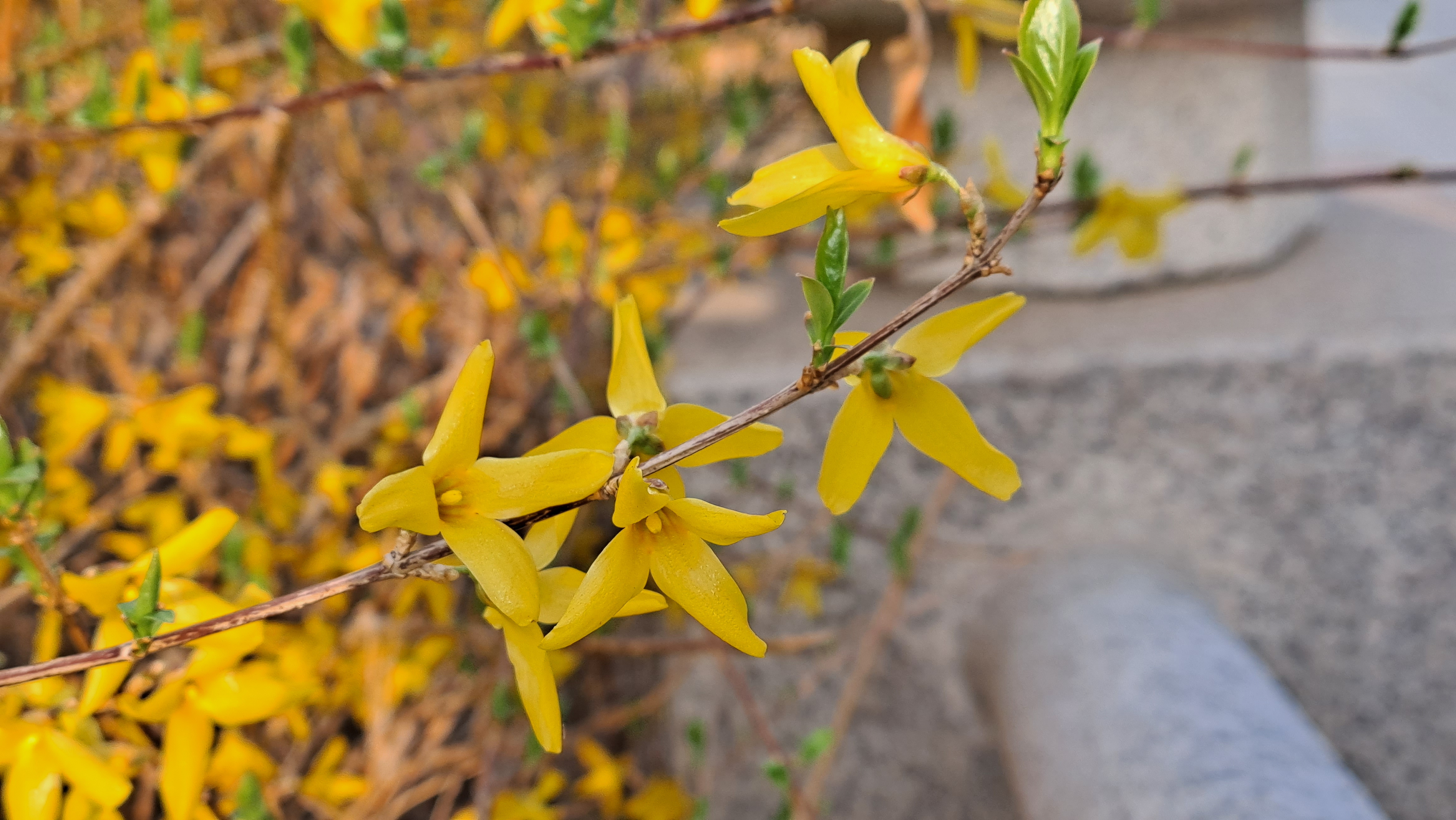 개나리는 더 이상 노랑은 없을듯하고. 잔듸밭의 앵두꽃은 하양 과 핑크가 절묘한 조화를
