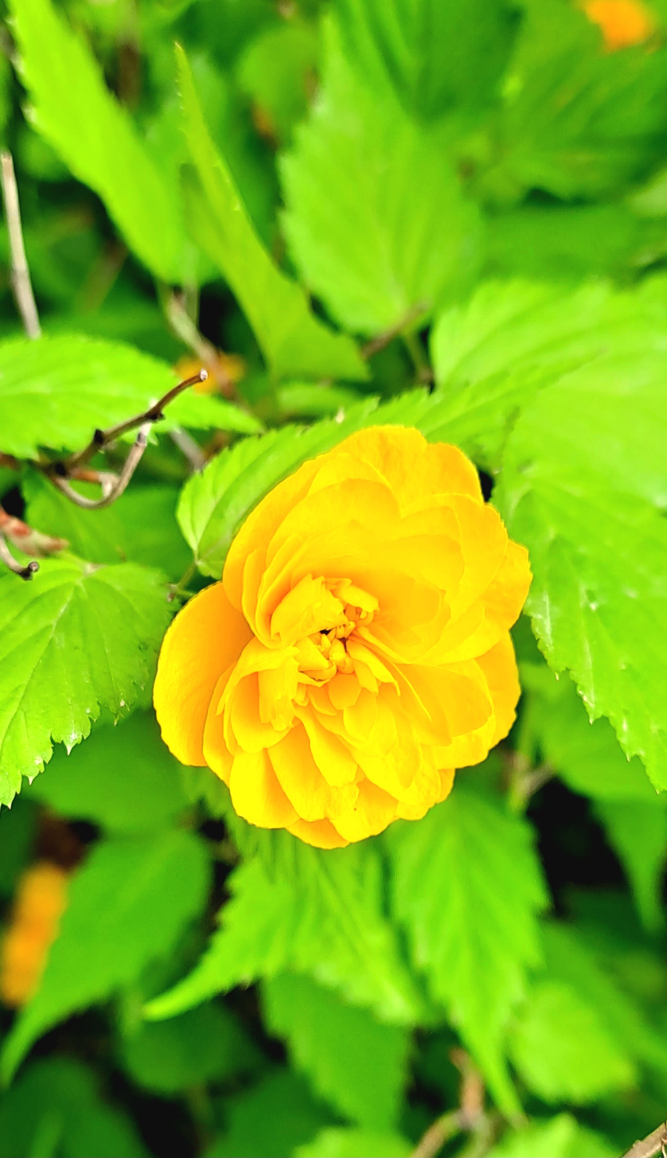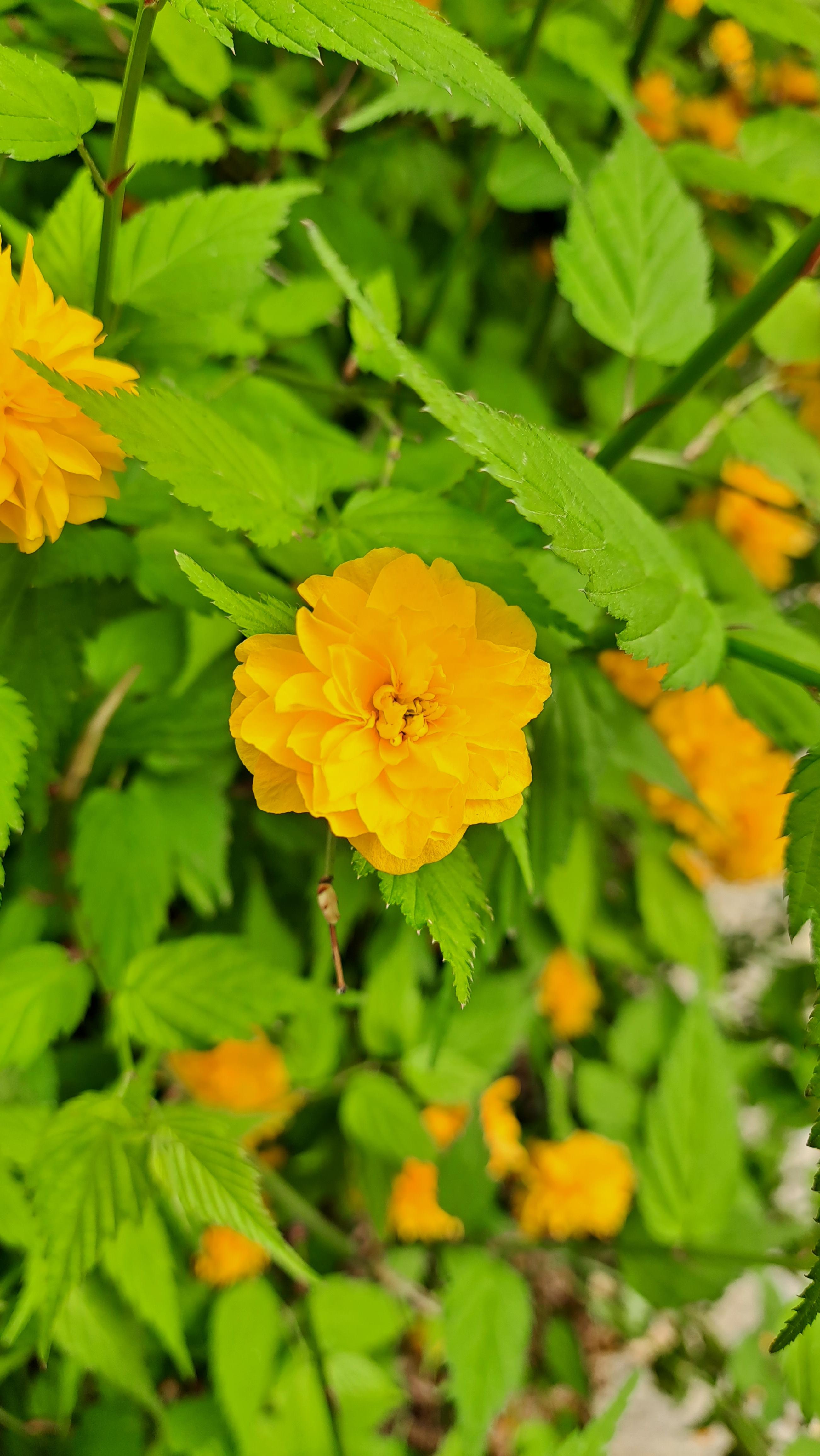 죽단화는 낙엽 활엽 떨기나무로. 꽃은 4~5월에 핀다,