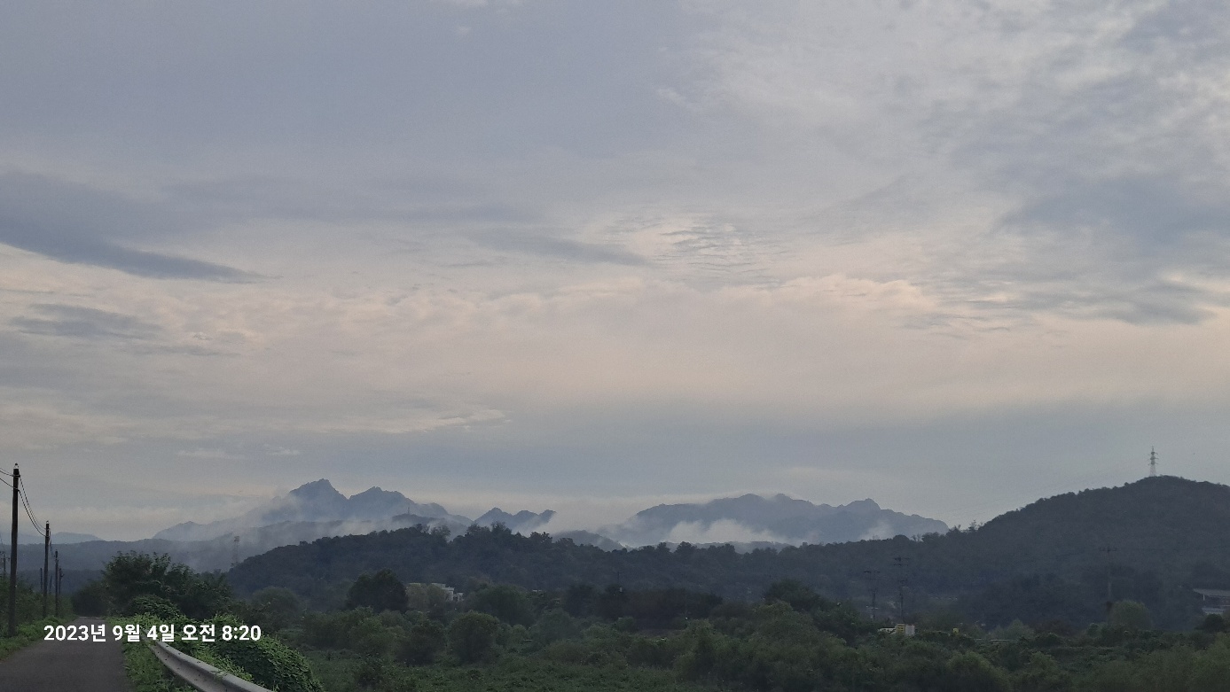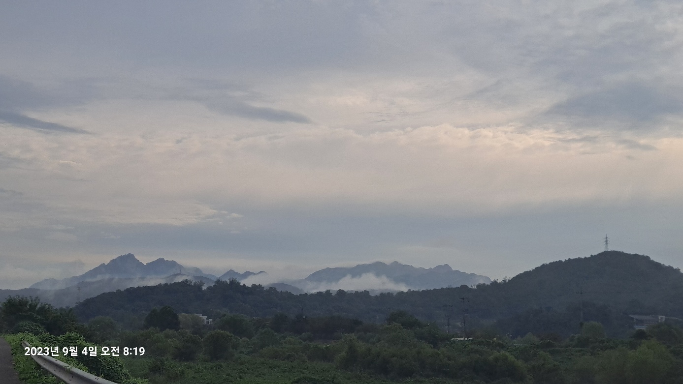 2023년 9월 4일 창릉천에서 바라본 운무 자욱한 북한산(삼각산)