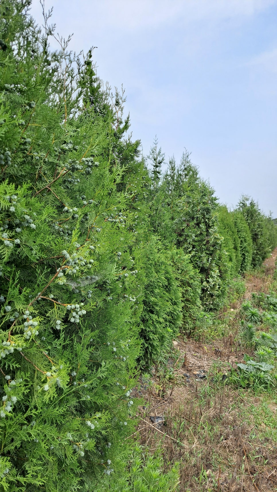 울타리: 측백나무는 상록수로 1년 내내 푸른 잎을 유지하므로, 울타리용으로도 많이 심습니다. 울타리처럼 밀집하여 심으면 바람막이 역할을 하기도 합니다.