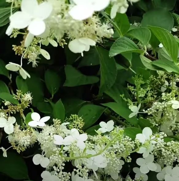 | 큰나무수국 : 범의 귀과 목본류, 나무수국 개량종, 꽃은 흰색, 가짜꽃만 핍니다, 암술과 수술이 정상적이지 않아 열매를 맺지 못하고 꿀이나 향기가 별로 없어 벌, 나비가 찾아들지 않음 ![]() |