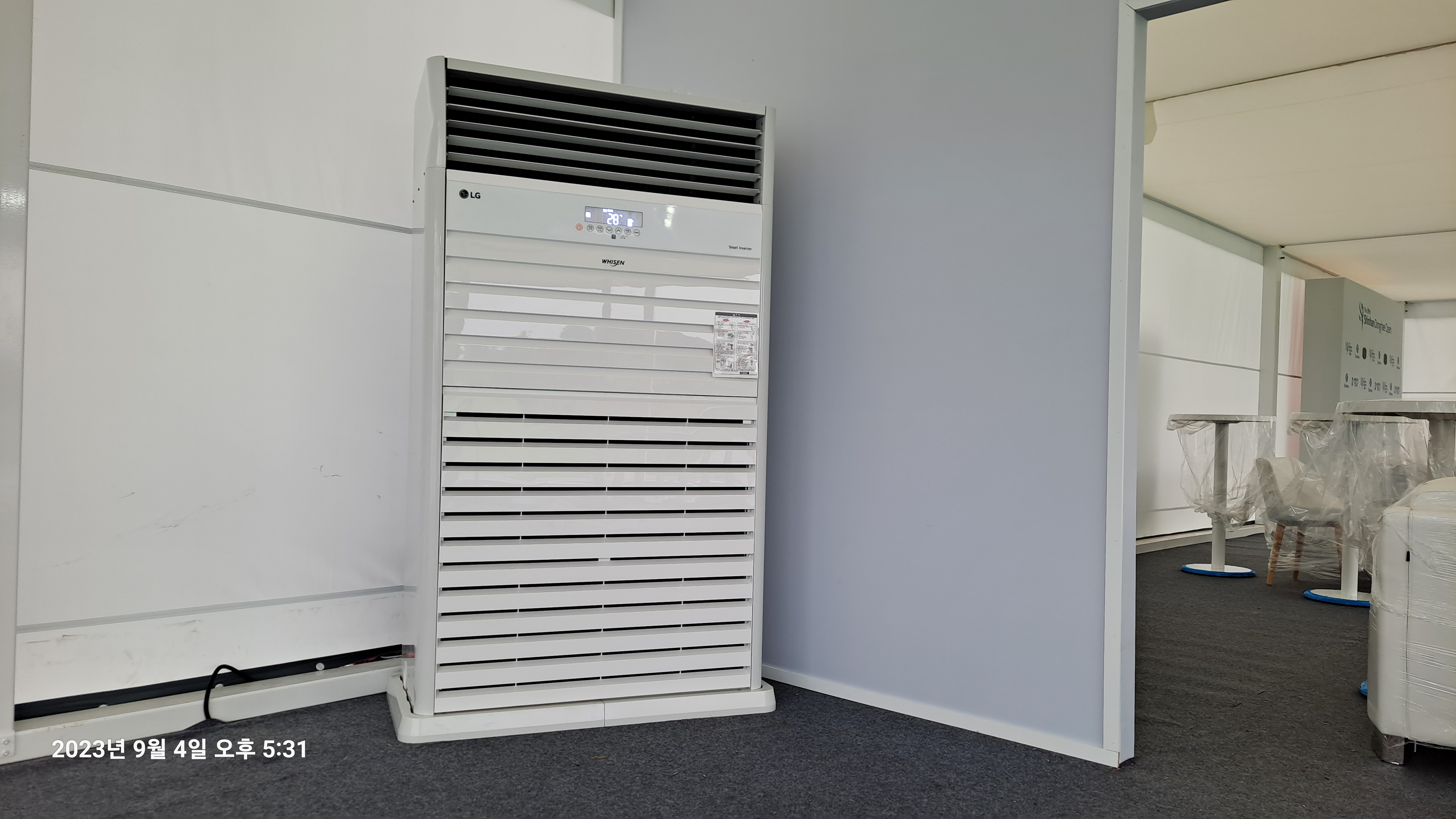 오는 9월 7일 개막하는 제39회 신한동해오픈 골프대회 장 갤러리 관람석에 중대형 80평형 냉난방기 2대 렌탈 설치