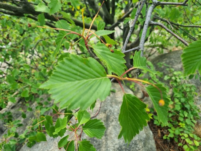 팥배나무, 꽃은 4~ 5월에 피고 흰색, 물앵두나무·벌배나무·산매자나무·운향나무·물방치 나무라고도 한다, 열매는 타원형이며 반점이 뚜렷하고 9∼10월에 홍색으로 익는다. 열매가 붉은 팥알같이 생겼다고 팥배나무라고 한다