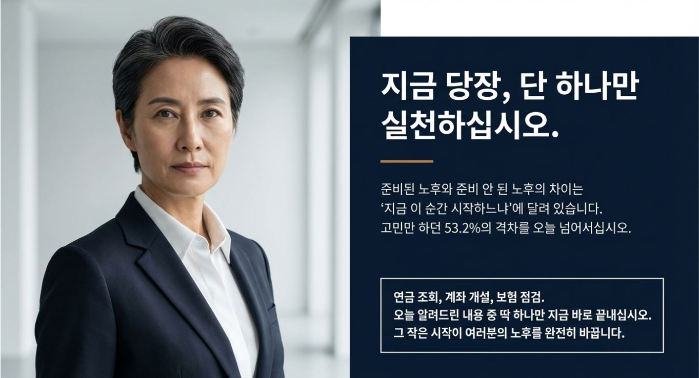 소득이 있는 50대라면 지금 당장 IRP와 연금저축 계좌를 개설하고 최소 월 10만 원이라도 납입을 시작하세요.